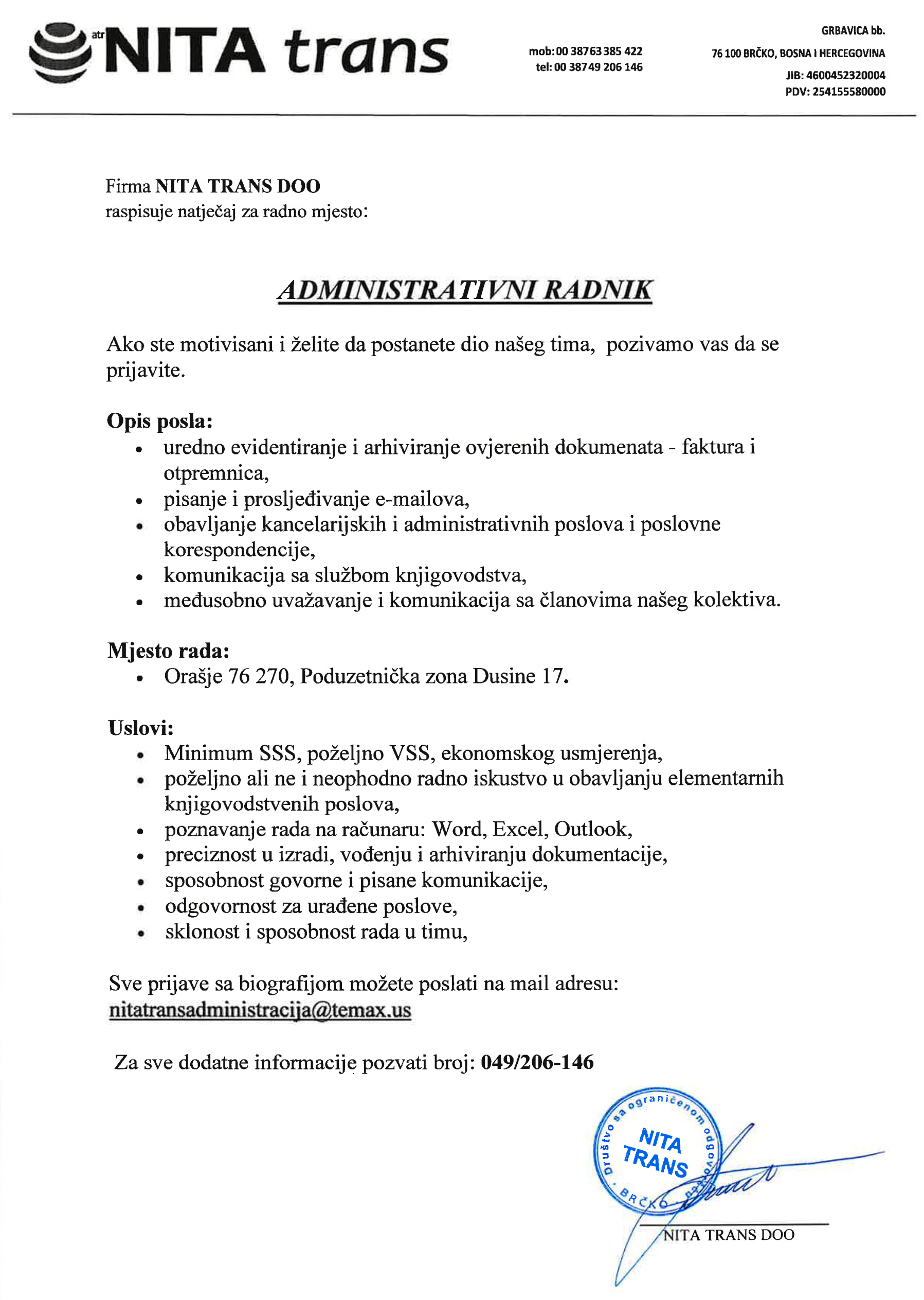 Poslovi 09 Jun,2025 Štampa Poslovi Administrativni radnik Administrativni radnik (1)Nita trans dooBrčko Prethodno Sljedeće