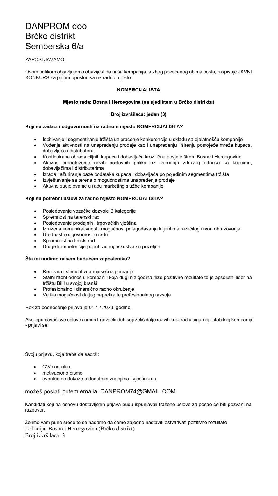 Poslovi 06 Okt,2023 Štampa Poslovi Komercijalista Komercijalista (3)Danprom dooBrčko Prethodno Sljedeće
