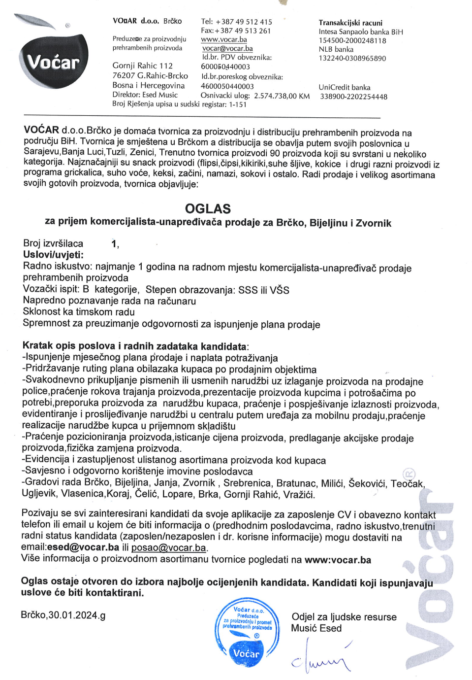 Poslovi 31 Jan,2024 Štampa Poslovi Komercijalista Komercijalista (1)Voćar dooG Rahić, Brčko Prethodno Sljedeće