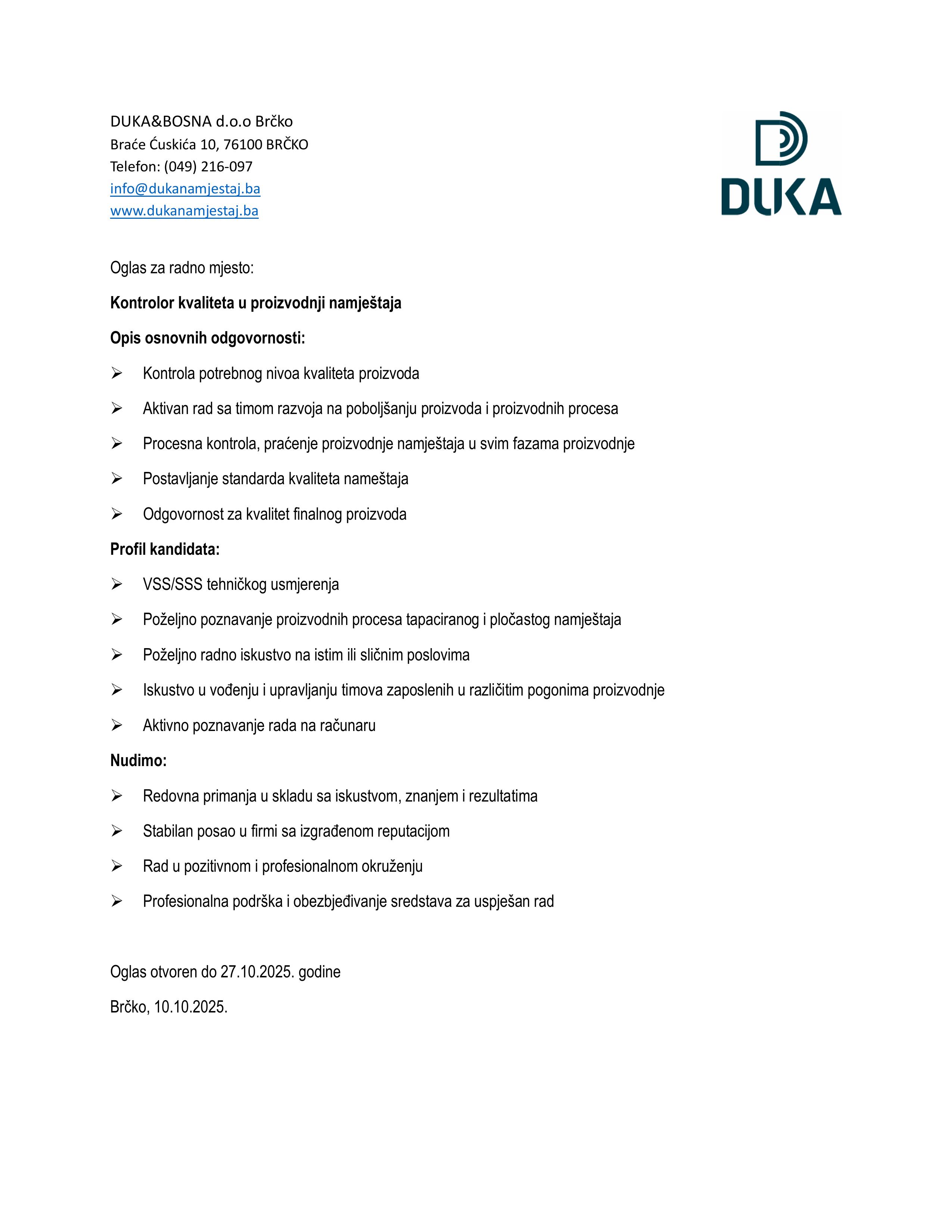 Kontrolor kvaliteta u proizvodnji namještaja (1)