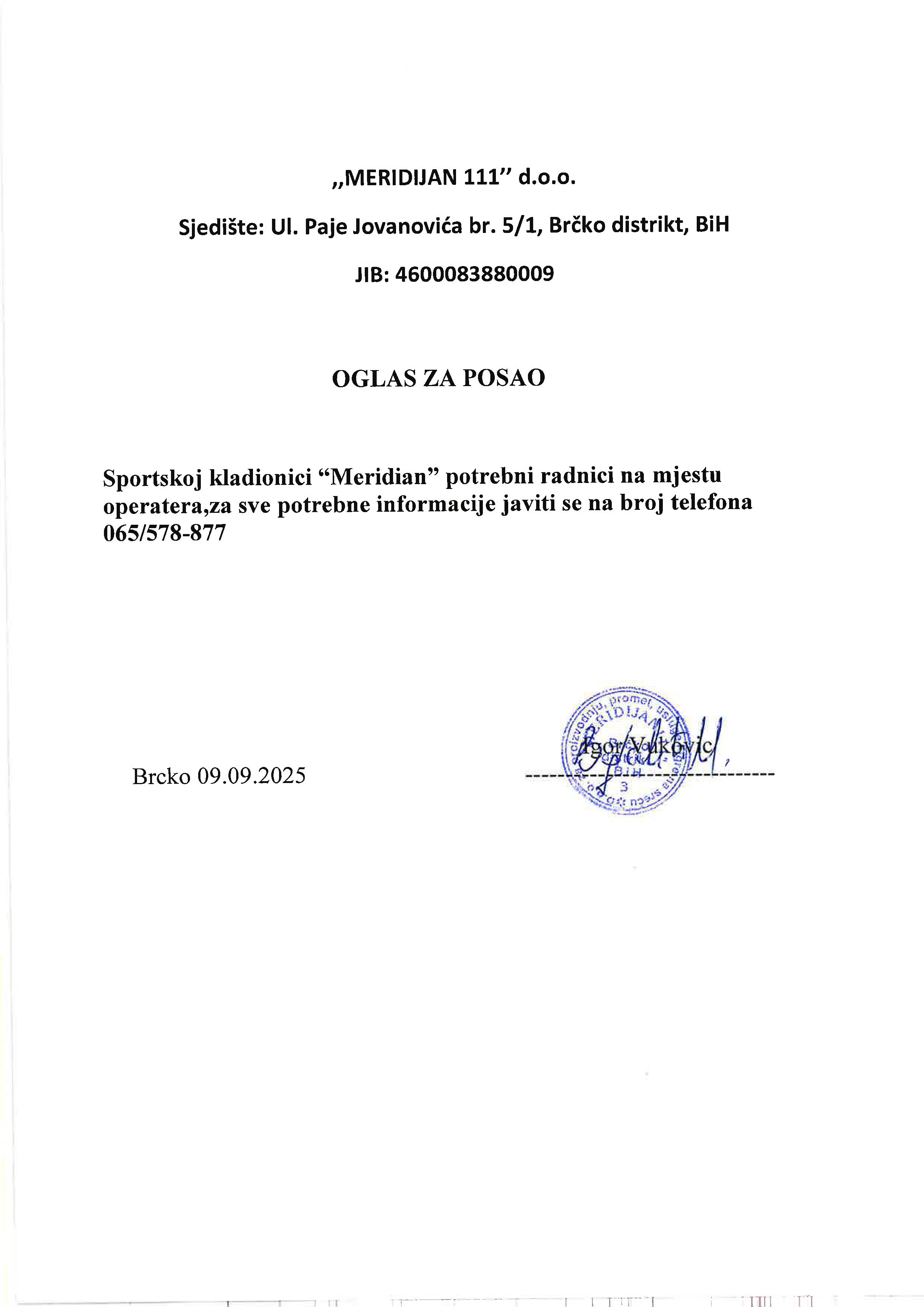 Operater (1)Meridian d.o.o.Brčko