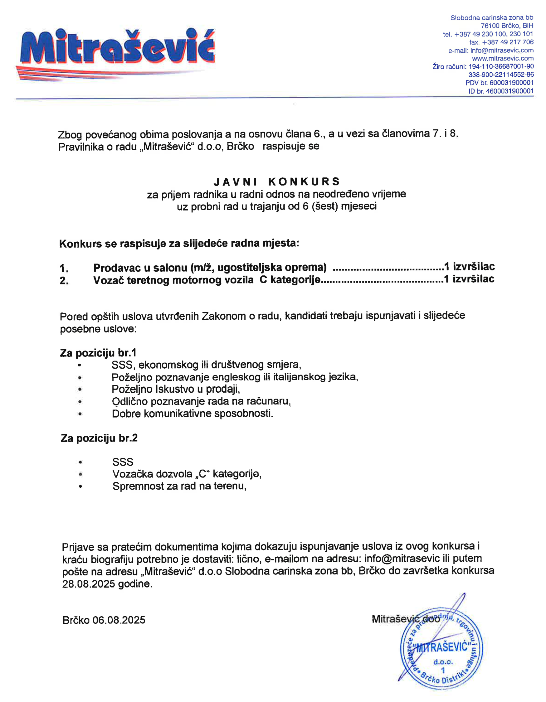 Poslovi 06 Avg,2025 Štampa Poslovi Prodavac u salonu, Vozač C kategorije Prodavac u salonu(1), Vozač C kategorije(1)MitraševićBrčko Prethodno Sljedeće