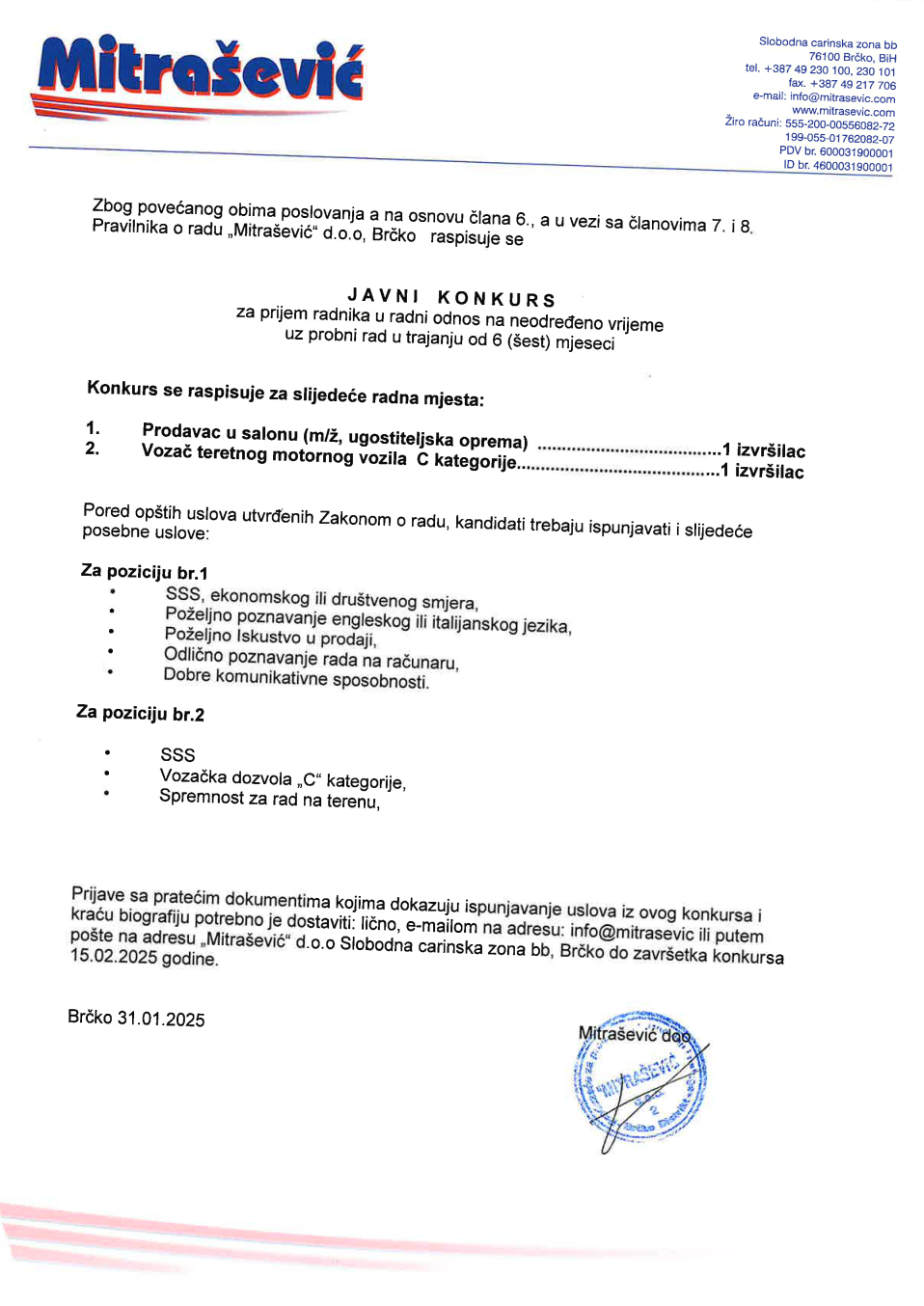 Poslovi 03 Feb,2025 Štampa Poslovi Prodavac, Vozač Prodavac(1), Vozač(1)Mitrašević dooBrčko Prethodno Sljedeće