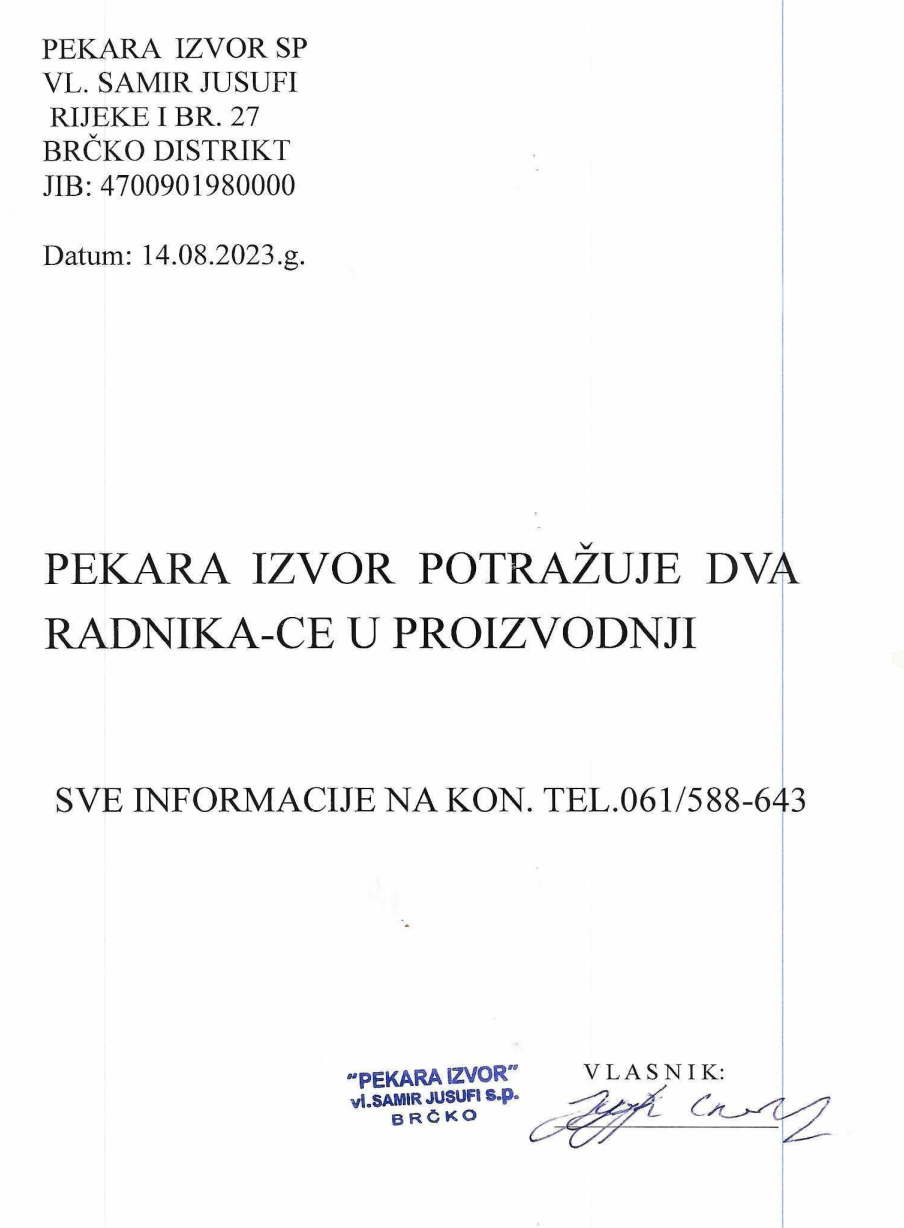 Poslovi 15 Avg,2023 Štampa Poslovi Radnik/ca u proizvodnji Radnik/ca u proizvodnji(2)Pekara Izvor SPBrčko, Rijeke Prethodno Sljedeće