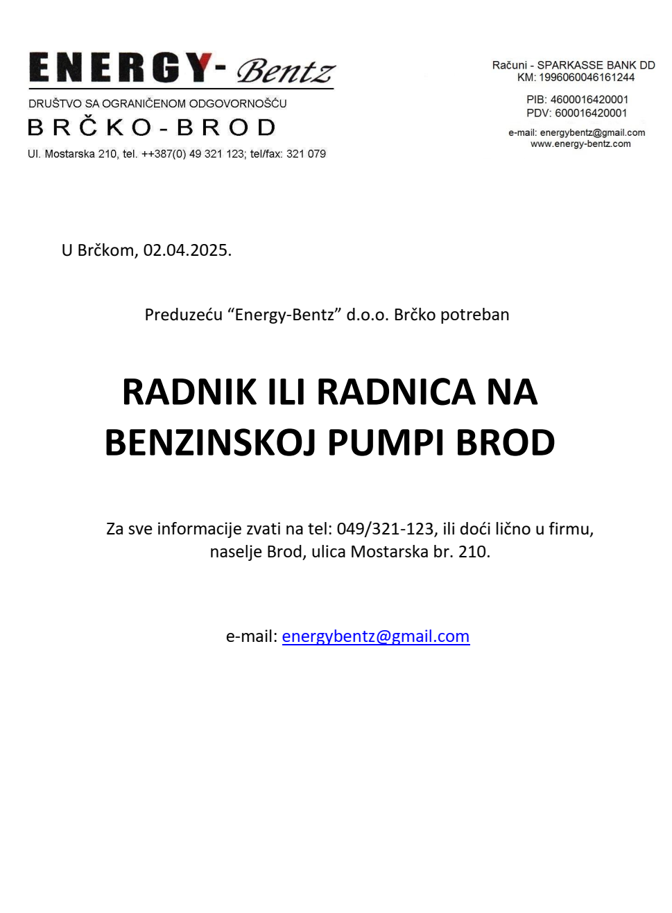 Poslovi 03 Apr,2025 Štampa Poslovi Radnik na pumpi Radnik na pumpi (1)Energy Bentz dooBrod, Brčko Prethodno Sljedeće