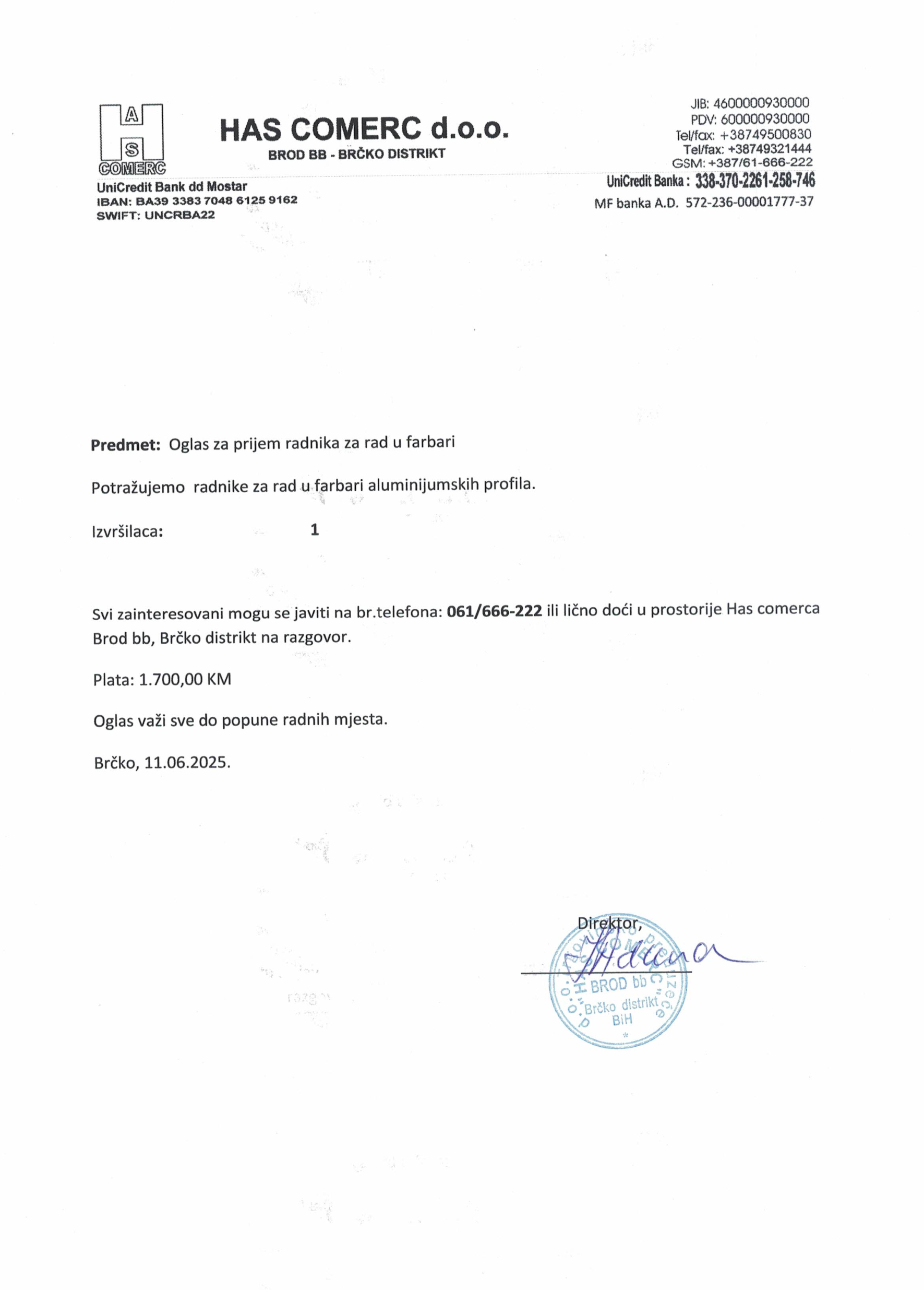 Poslovi 11 Jun,2025 Štampa Poslovi Radnik u farbari alumin. profila Radnik u farbari alumin. profila (1)HAS COMERC dooBrčko Prethodno Sljedeće