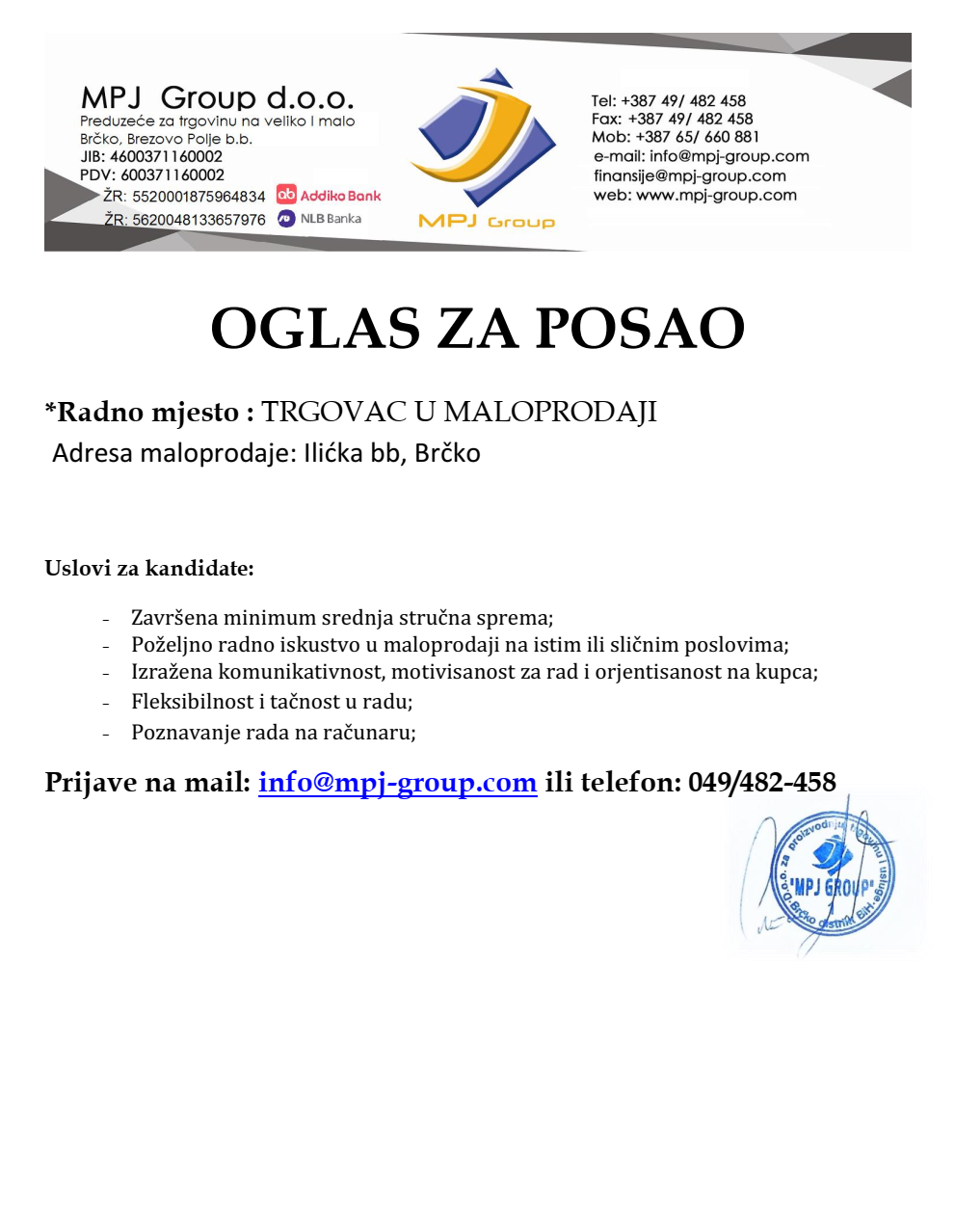 Trgovac (1)MPJ Group dooBrčko, Ilićka