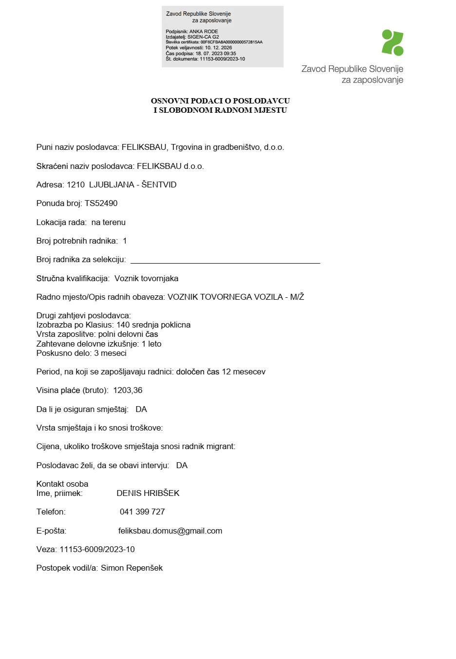 Poslovi 17 Avg,2023 Štampa Poslovi Vozač tovarnog vozila Skinuti Biografiju (CV) ovdje Vozač tovarnog vozila (1)Feliksbau dooSlovenija Prethodno Sljedeće
