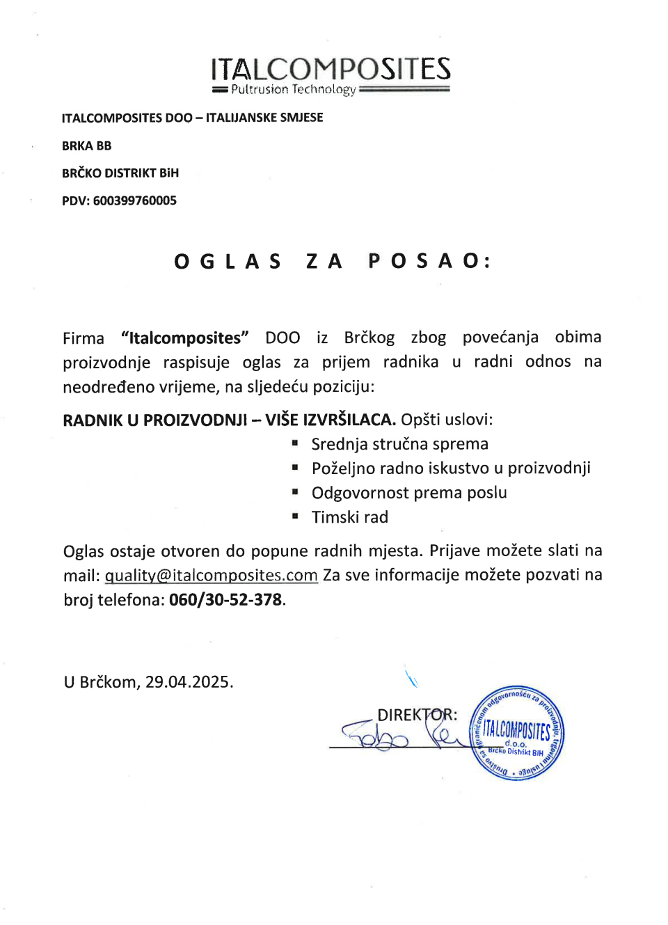 Poslovi 30 Apr,2025 Štampa Poslovi Radnik u proizvodnji Radnik u proizvodnji (više)Italcomposites dooBrka, Brčko Prethodno Sljedeće
