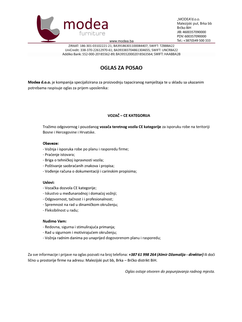 Poslovi 27 Avg,2025 Štampa Poslovi Vozač C, E Vozač C, E (1)Modea d.o.o.Brka, Brčko Prethodno Sljedeće